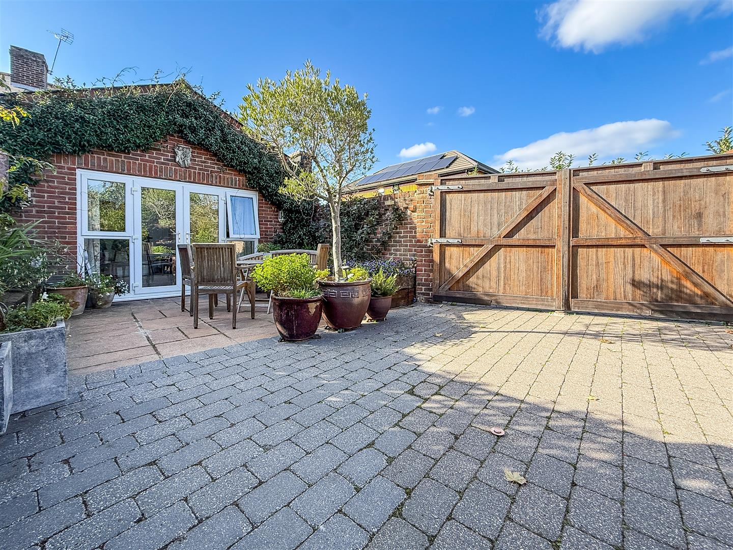 We are pleased to welcome to the market this exceptional three bedroom end of terrace family home with double garage and off road parking in the popular Portchester location of Castle Street.The home is very well presented throughout and benefits from a huge rear extension with vaulted ceilings, velux windows and french doors opening into the garden. This space features living room and kitchen which is open plan with double doors opening into what could be a separate dining room or bedroom three. To the front of the property is a further reception room currently being utilised as a dining room. There is a also a modern shower room on the ground floor which acts as a en-suite to the bedroom.Moving upstairs there are two double bedrooms both benefitting from en-suites. Bedroom ones en-suite features separate bath and shower, w/c and wash basin. Bedroom two features shower cubicle, w/c and wash basin.Externally the property has a front garden with pathway leading up to the front entrance. High bushes and fence line keep the property private from the road and it is a real sun trap. There is side access through the electric gates which leads down to a double garage at the bottom of the garden. This double garage has electric and water supply so has the potential to be converted into a bungalow or annexe (subject to relevant planning permissions)For more information or to arrange a viewing please call Castles today.